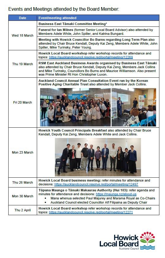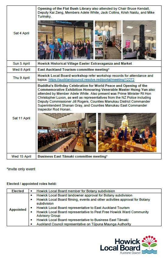 Howick Local Board - Members Report as of Wednesday 15 April 2026
